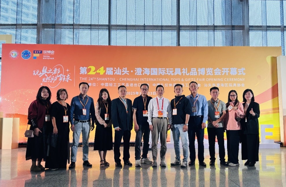 2025年10月23日,第24届汕头·澄海国际玩具礼品博览会在汕头国际会展中心盛大开幕,汕头市委书记温湛滨、澄海区委书记王楚彬、中国轻工工艺品进出口商会副会长李文锋、中国礼仪休闲用品工业协会理事长杨帆,汕头市澄海玩具协会及全球多个国家和地区的采购商、参展商代表齐聚现场。北京潮人海外联谊会澄海南澳分会应汕头市澄海区人民政府、澄海玩具协会的邀请,共同见证了这场“玩具之都”的年度盛会启幕。本次大会由著名主持人朱军主持。
