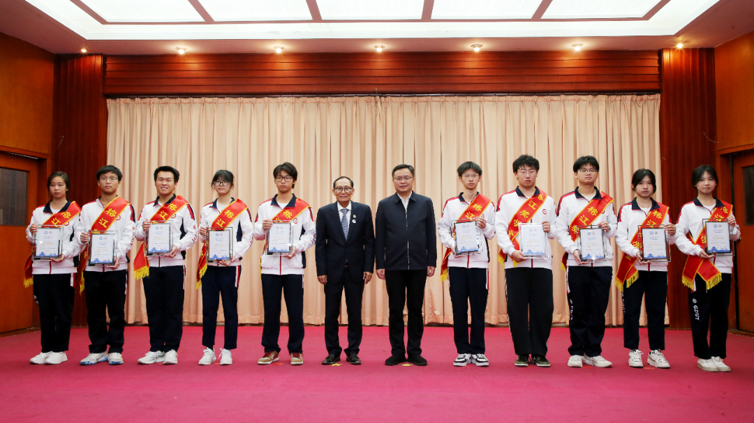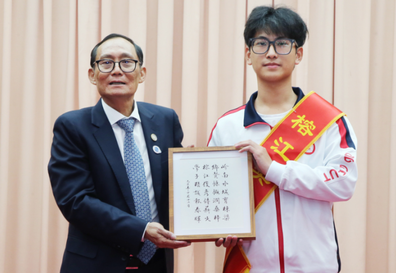 揭阳市委副书记王绍乐、林辉勇先生共同为2025年榕江奖学金获奖学生代表颁奖