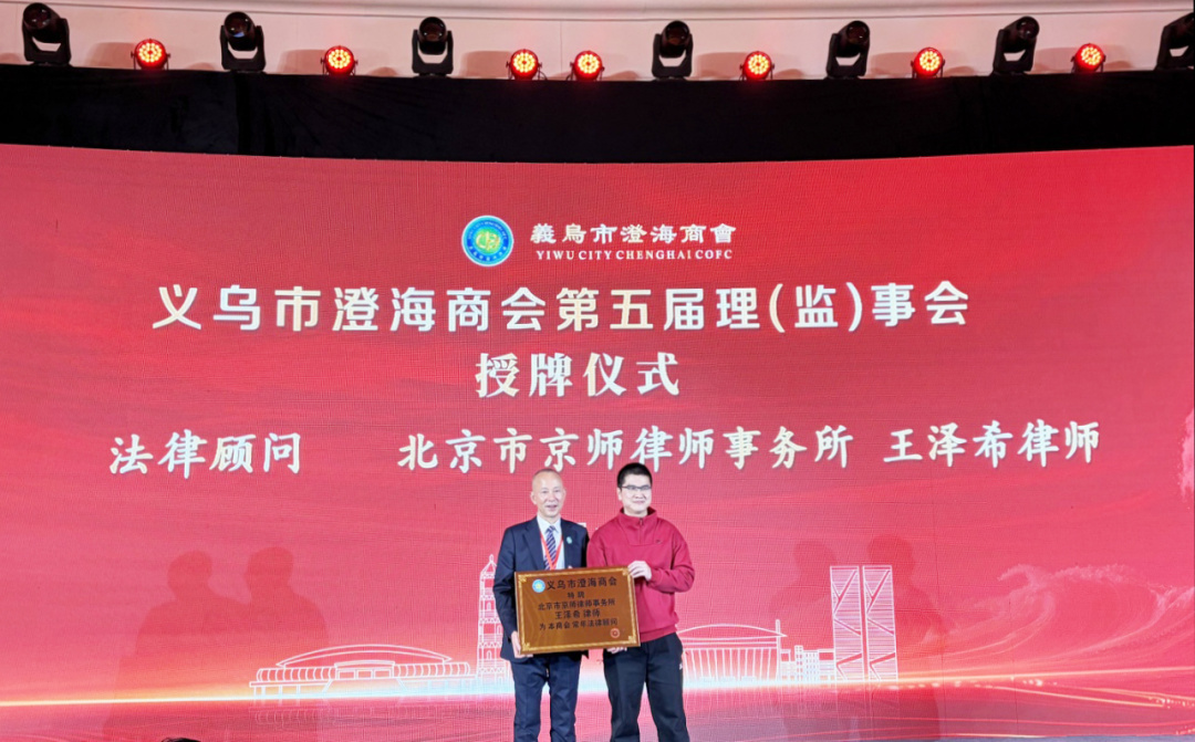 澄海南澳分会常务副会长、京师律师所王泽希律师受聘为义乌市澄海商会法律顾问。