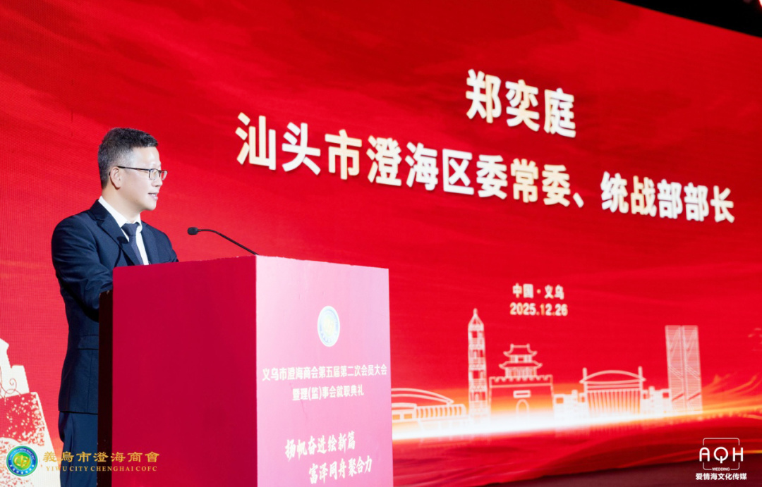 2025年12月26日,义乌市澄海商会第五届理(监)事会就职典礼仪式在义乌市幸福湖国际会议中心举行。北京潮人海外联谊会副会长兼澄海南澳分会会长李伟南、澄海南澳分会常务副会长王泽希、余伟进等应邀参加本次活动。